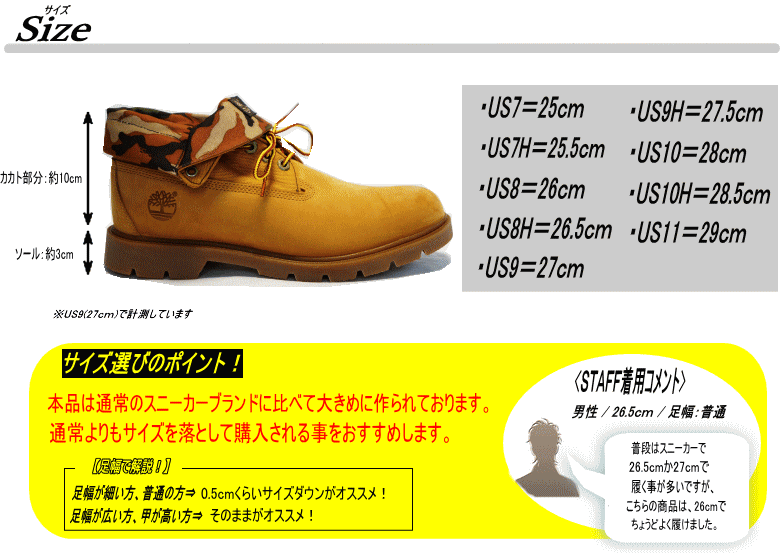 | サイズ | 作り⇒大きめ 【サイズ選びのポイント!】 足幅が細い方、普通の方⇒0.5cmくらいサイズダウンがオススメ! 足幅が広い方、甲が高い方⇒そのままがオススメ! |