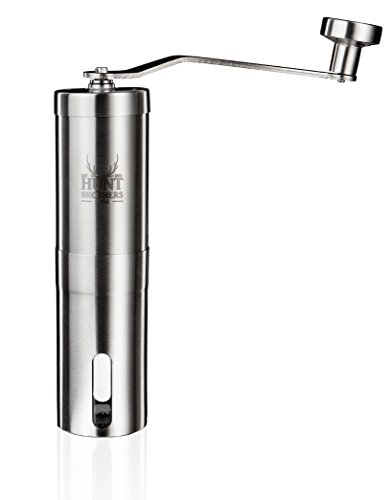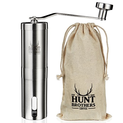-. Feature : Grinds evenly and consistently. The conical ceramic burr is easily accessible, handily adjustable within seconds. Built in Click feature with 18 different grind setting. Finest and most precise grinding results will be achieved with minimum effort. The Best brewing partner for your your French Press, Aeropress, Chemex, Pour over or any other brewer. / Compact handling makes it an ideal travel mate for campers, road travellers and those who can't resist to a superior taste of coffee wherever they are. GET THE BONUS. this grinder comes with its own environmentally-friendly organic cotton string pouch to make it even easier to travel with. / Excellent steering performance. Enjoy the advantages of this well-constructed ergonomic grinder shape to grind your freshly roasted coffee beans to perfection with ease and speed. It grinds consistently and quietly. If you wake somebody up while preparing your first coffee in the morning it happened because of the irresistible coffee fragrances that keeps floating through the house. / Superior Quality. The Hunt Brothers Coffee Grinder is crafted with fine precision from unbeatable quality stainless steel to serve with top performance, high durability and solidity in the everyday use. / What our customers say: "Best coffee grinder I have had in a long time!" "Excellent grinder for Home and travel!" "I love this mill!" "Every coffee drinker needs this!" "Five Stars!" "Excellent Service & Grinder!" "Great french press companion!" - Order Today and Enjoy The Best Cup of Coffee - 100% Money-Back Guarantee