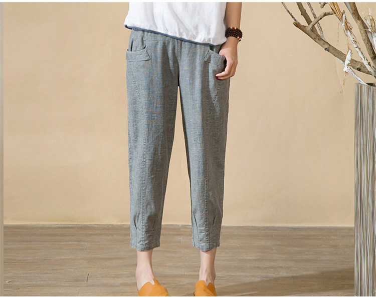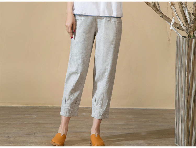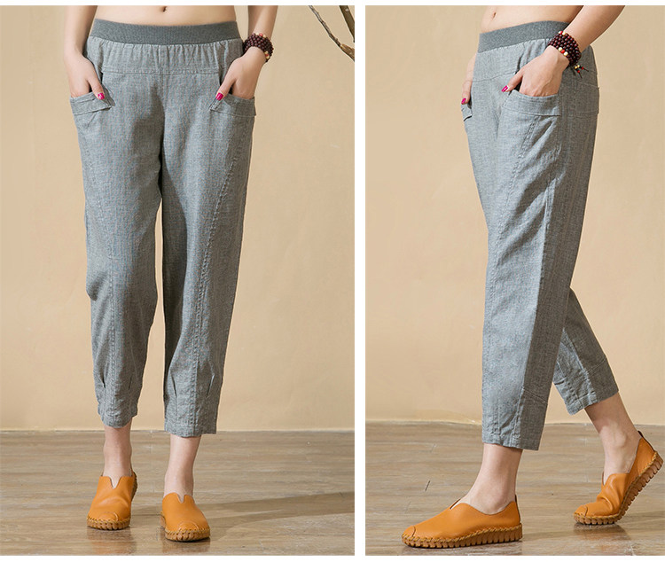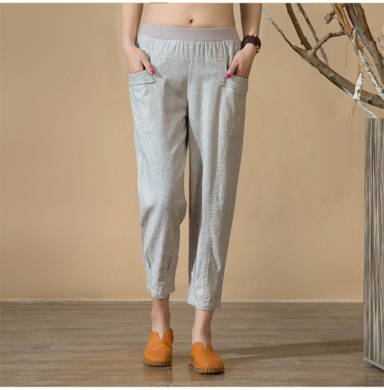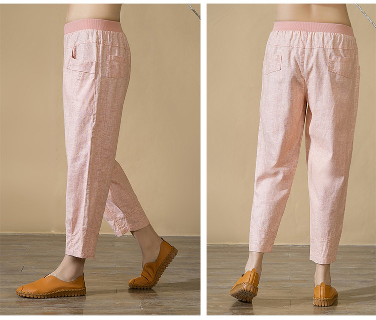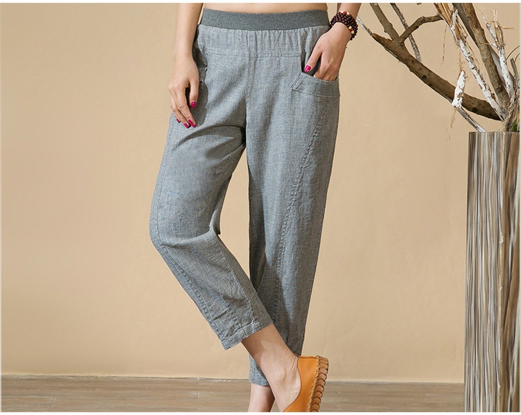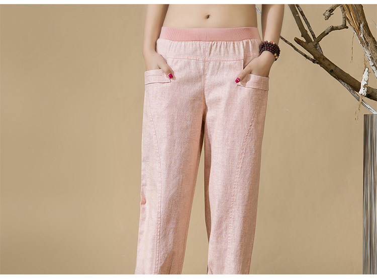 中老年女裤亚麻九分裤松紧高腰休闲裤中年妈妈裤子七分夏季棉麻春