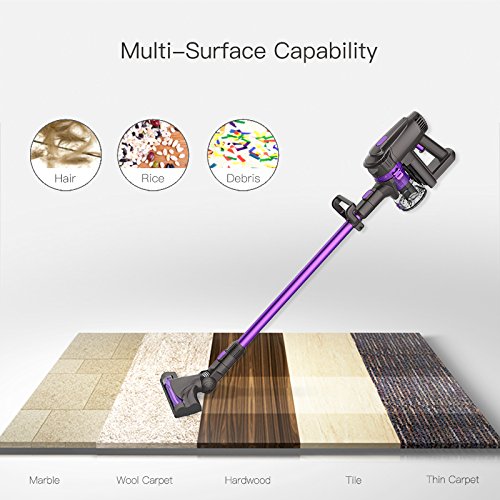 Multi-surface Capability Dibea F6 cordless vacuum cleaner can vacuum different kinds of floors, including hard wood floor, carpeted stairs and thin rugs, ideal for home with pets!