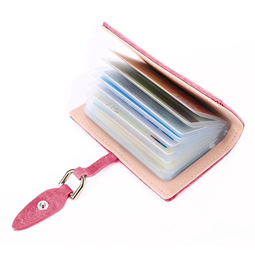 Qyoubi Women's Leather Credit Card Holder Case Zipper Wallet With 20 Card Slots