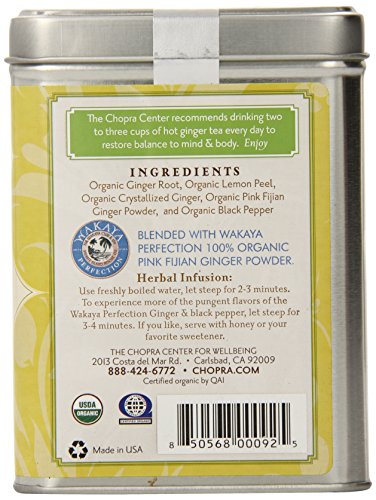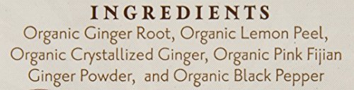 -. Feature : This powerful organic ginger tea supports a healthy disgetive system and cleansing action / Ginger Root, Lemon Peel, and Black Pepper create a wonderful mix that soothe your taste buds / Known in Ayurveda as the universal remedy, ginger has been honored around the world and across time for its unique medicinal properties / Contains Organic Ginger Root, Organic Lemon Peel, Organic Ginger Pieces and Organic Black Pepper / Caffeine free, herbal tea