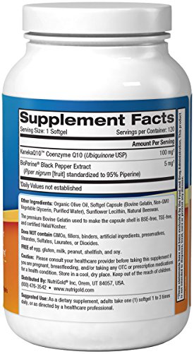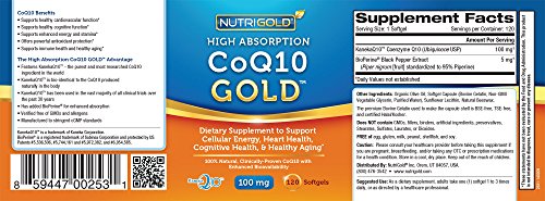 Nutrigold CoQ10 Gold (High Absorption) (Clinically-proven KanekaQ10), 100 mg, 120 softgels