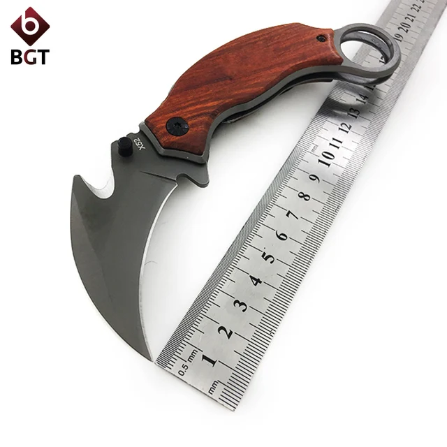 X52 전술 사냥 접는 나이프 유틸리티 5Cr13 스틸 나무 핸들 전투 캠핑 EDC 사용자 정의 칼 생존 포켓 커터 도구