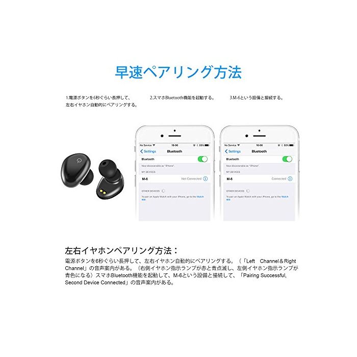 ♬【스테레오 고음질】거추장스러웠던 케이블 속박부터 해방 되고, 고속 데이터 전송 코어를 사용해,두 개의 모노럴의 음을 융합하고, 참된 무선 입체 음성 체험을 주시게 가까워지는.양방의 음을 융합하고, 음소리의 위치 보다 선명하게 각종 악기의 방향도 판별 성과,현장감에 가까운 체험이 가능합니다.무게는 불과 4g에,귀에 얻어 음누락을 막는다.무선 범위는 10m이상입니다.1회의 풀 충전 경우,3시간 정도 연속 사용 가능합니다.
