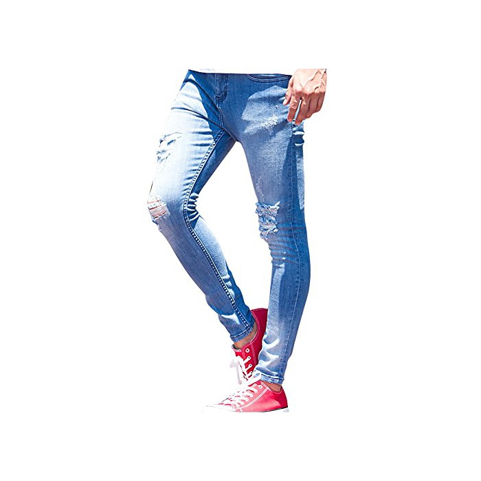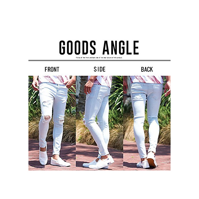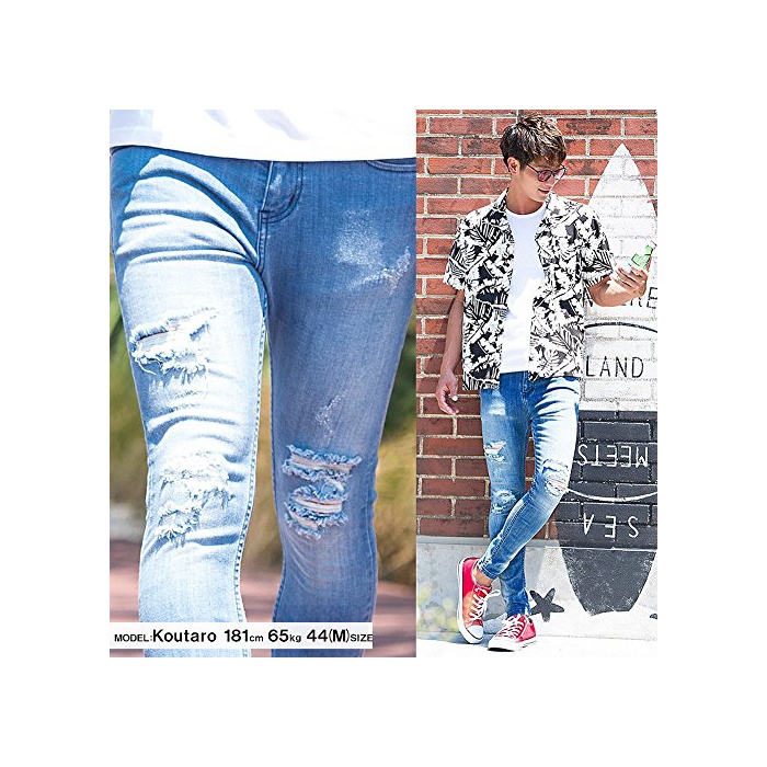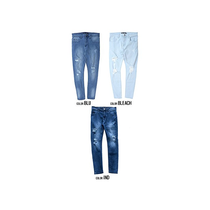 (캐바 리어)CavariA 맨즈 엉클장 데미지 데님 팬츠 (스키니 슬림 긴바지) 42(S) BLU(블루)