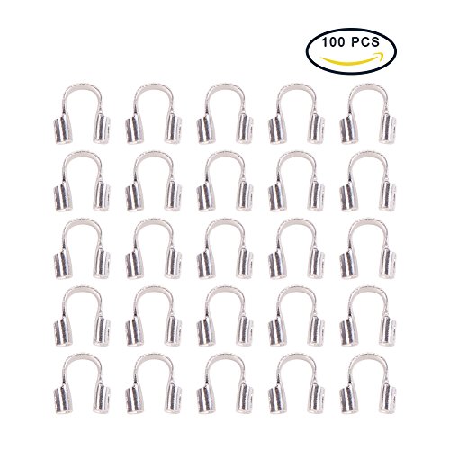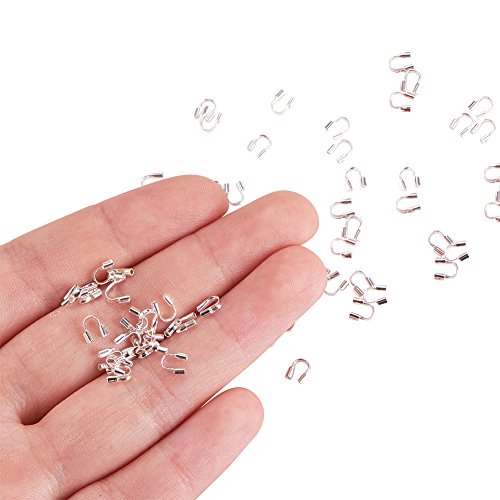 Pandahall 100pcs Silver Color Brass Wire Guardian and Protectors, About 4mm Wide, 5mm Long, 1mm Thick