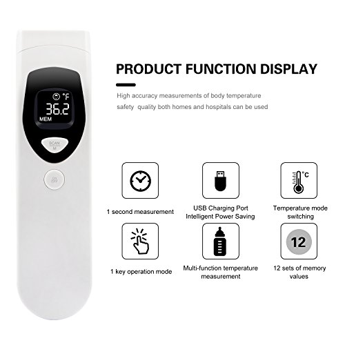 Baby Forehead Instant Read Thermometer Digital Infrared Rechargeable Thermometer with 12 Group Memory Storage