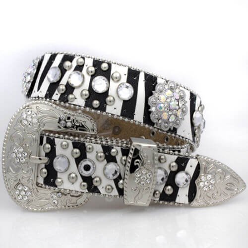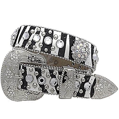 -. Title : Girl's Kids Zebra Print Round Crystal Concho Belt