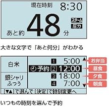 見やすいフルドット液晶 夕方、食事の支度をしながら遠目でも見える大きさ・明るさ。 また、よく使う炊き上がり時刻を4通り設定できる。 |