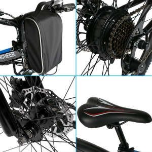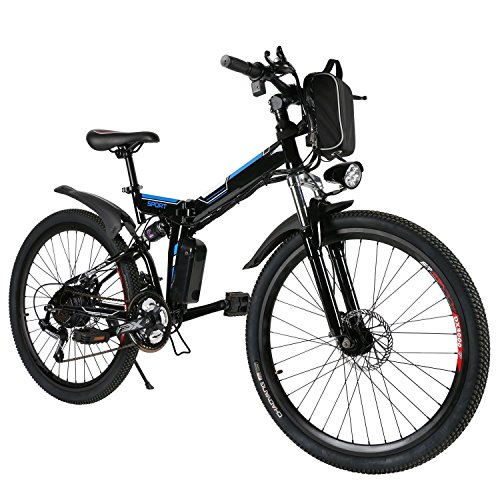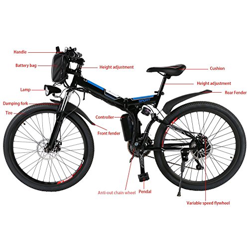 100% Brand New. Material: Aluminum Alloy 2 Colors: Black Blue, White Blue Wheel Diameter: 26inch Voltage: 36V Net Weight: 17kg/37.4lbs Product size: 175 x 64 x 101cm/68.3 x 25.0 x 39.4inch Mileage range: ≥40KM Handlebars: Standard Suspension Type: Front Rear disc brakes Seat: Padded Pedals: Foldable Opportunity: Outdoor Camping, Mountain Package Content: 1 x Mountain Bike