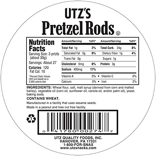-. Title : Utz Old Fashioned Pretzel Rods Barrel, 27 Ounce