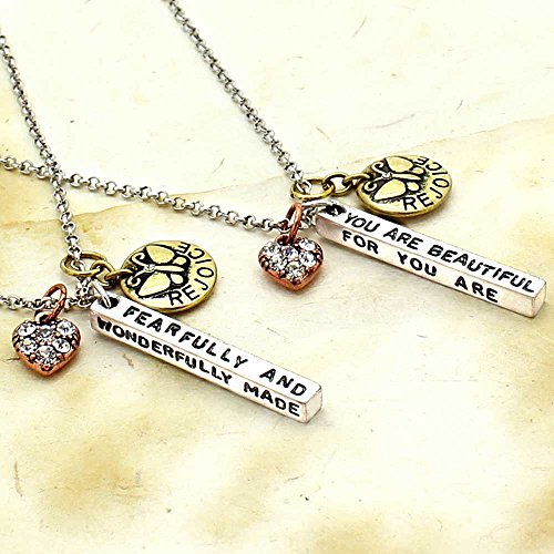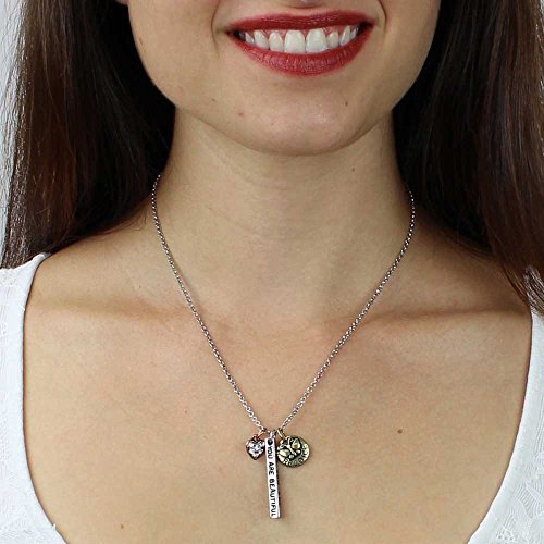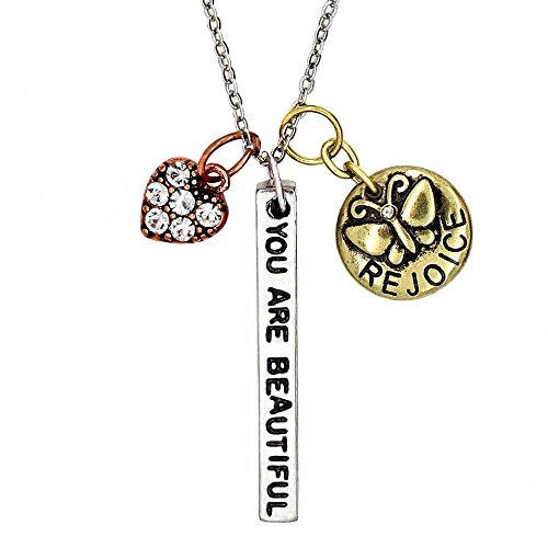 -. Title : Simple Truths 'You Are Beautiful' Pendant Necklace - Three Tone Charm Necklace With Delicate Crystal Heart And Engraved Butterfly Charm - Great Sports Fan Pendant Gift
