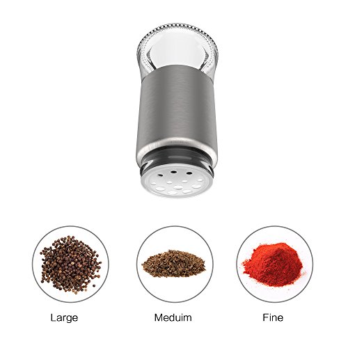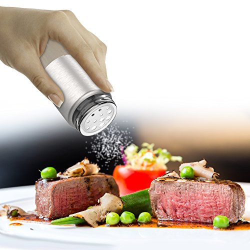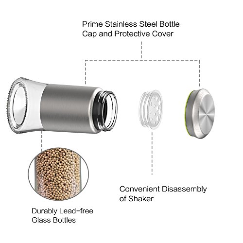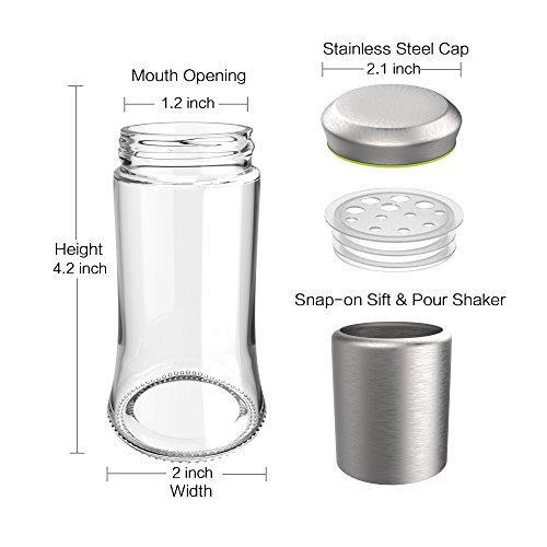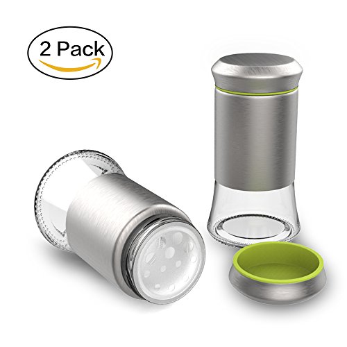 Tonicstar Seasoning Bottle Spices Shaker Fashion Design Containers Durable Stainless Steel and Lead-free Glass Bottle with Pour and Sift Shaker, 2 Pack