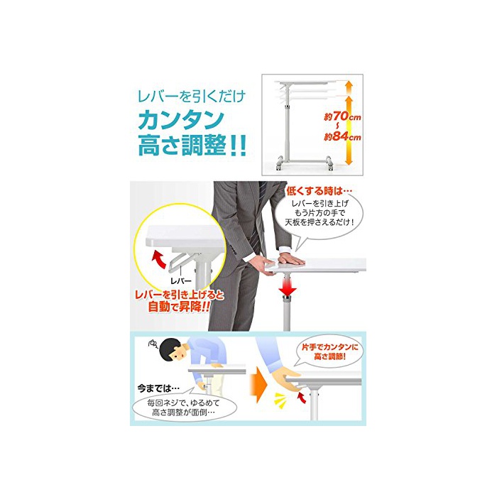간이 데스크나 보조 데스크로서의 사용이 가능한 테이블입니다.약70cm~약84cm까지,무단계에 높이 조정 성과,사용 씬 에 따라 좋아하는 높이로 조정에 옵니다.