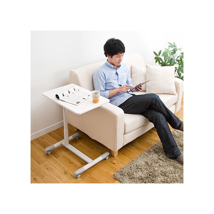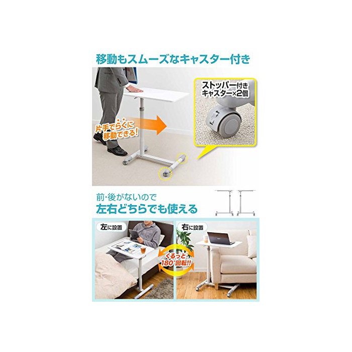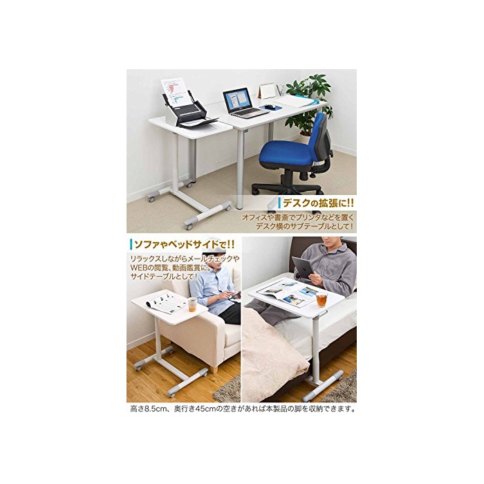 원본상품명: サンワダイレクト サイドテ?ブル ガス? 上下昇降 70~84cm ベッド ソファ パソコン デスク ホワイト 100-DESK095W