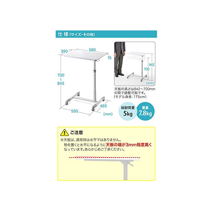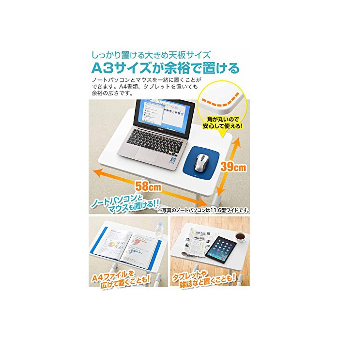 산와 다이렉트 싸이드 테이블 vet 싸이드 테이블 노트 PC 스탠드 높이 조절 가스압 승강 조정 화이트 100-DESK094/95W