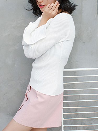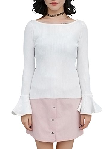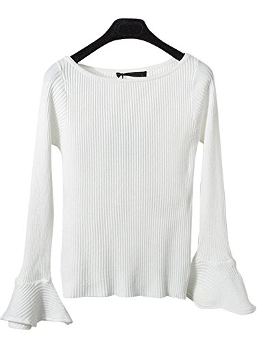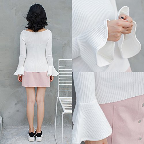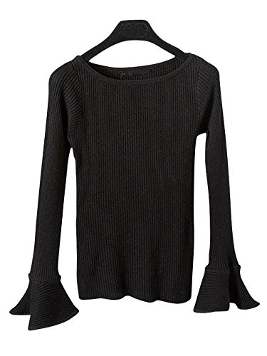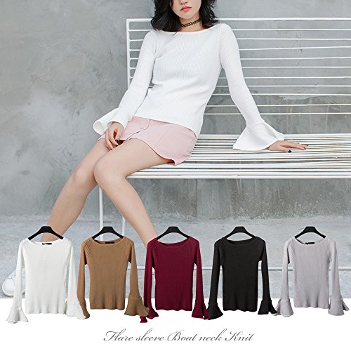 [모노G] MONOZY 레이디스 니트 스웨터 벨 슬리브 긴 소매 보트 넥 플레어 슬리브 트럼펫 슬리브
