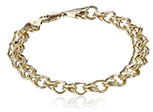 -. Feature : Double-link gold bracelet designed for housing charms or beads / Lobster claw clasp / Imported