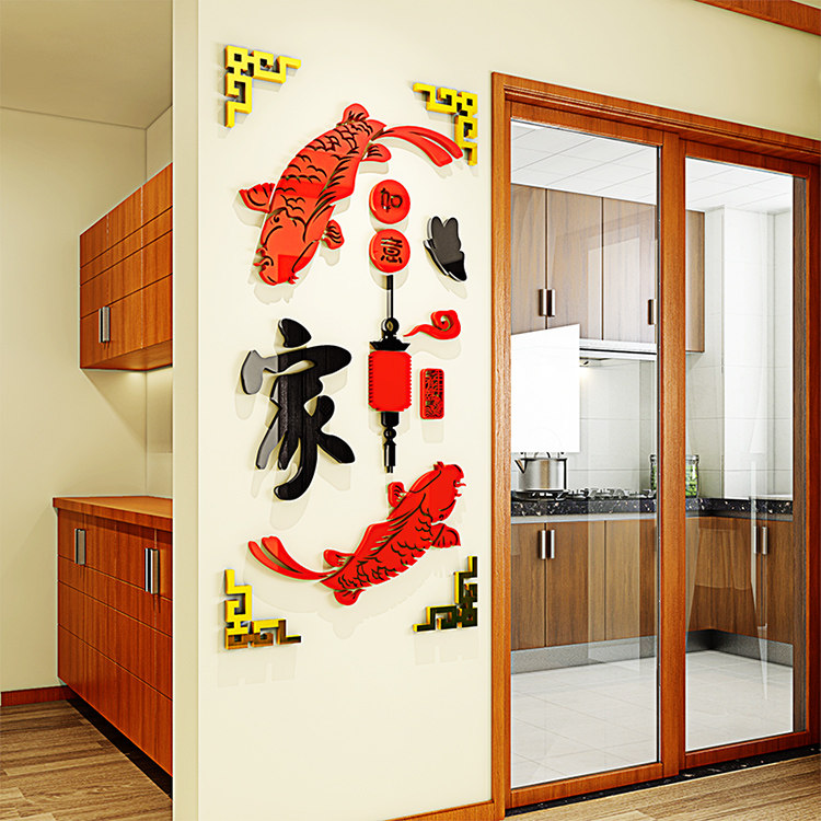 吉祥如意鱼3d亚克力新年装饰墙贴客厅电视背景墙贴画玄关家和贴纸