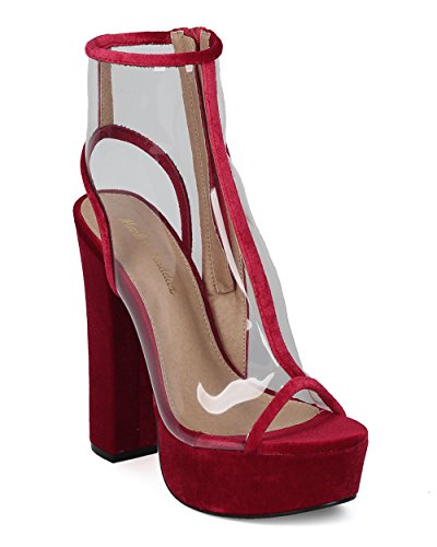 Women Block Heel Lucite Bootie - Platform Chunky Heel Bootie - Party Dressy Costume Cosplay Ank...