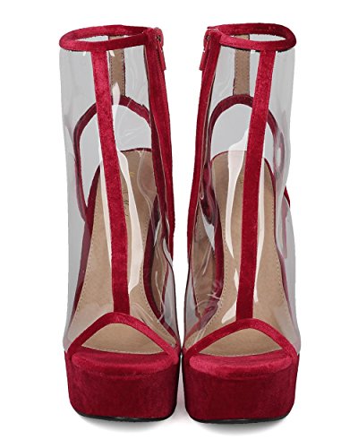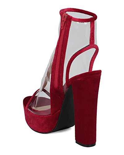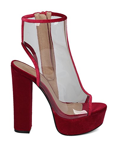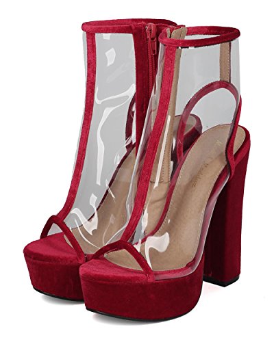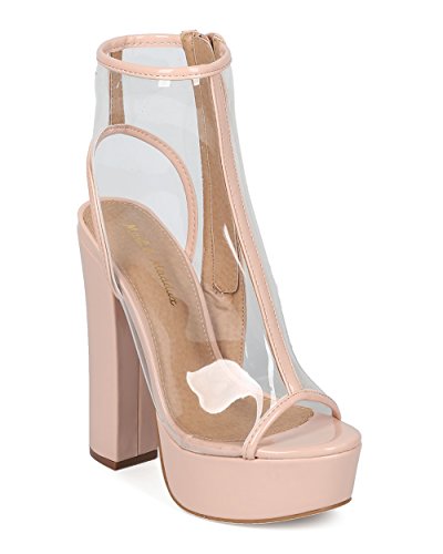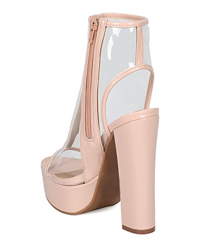Product Description These futuristic transparent booties are made with a peep toe, ankle high rise and a thick platform. Also made with a chunky block heel, open back panel and side zip for easy slip on and off. 0