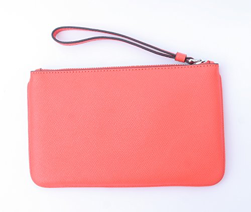 -. Feature : Imported - Bright Orange Crossgrain Leather / Top Zip Closure - Attached Wrist Strap / Interior Features: Bright Pink Fabric Lining, 6 Credit Card Pockets, 1 Large Bill Pocket / Approximate Measurements: 7 3/4" (L) x 5" (H)