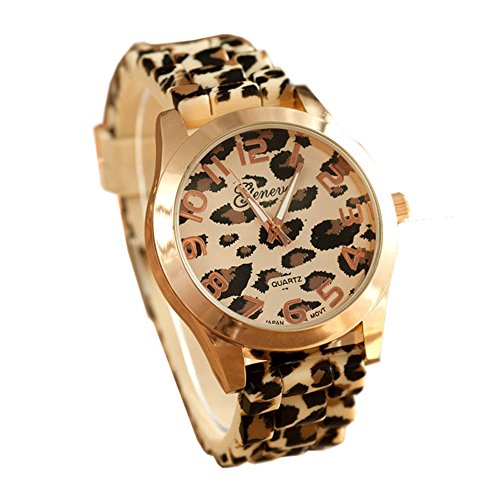 -. Title : Geneva Leopard Soft and Comfortable Silicone Women Watch analog