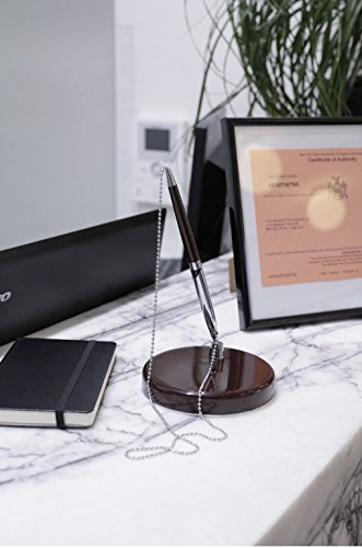 -. Feature : Beautiful classic desk pen / Never lose your pen again / Anti slip base provides sturdy and secure placement / Make a statement with this beautifully crafted desk pen / Measures 4.5 by 7 by 4.5-Inches