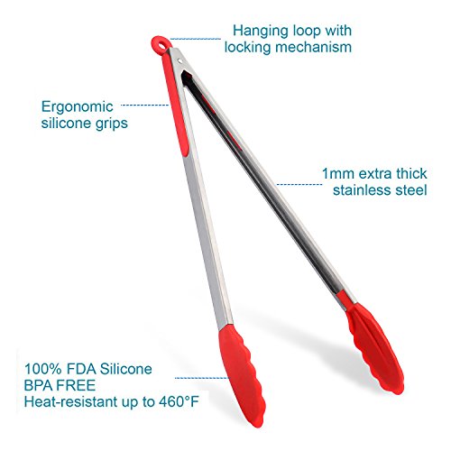 Studio : ForLiving Technology Industry Company Publisher : ForLiving Technology Industry Company Product Description Specification: Large Sizes:Large 16" Commercial Grade, Professional Stainless Steel Metal with Heat Resistant, Non-Stick silicone tips. Superior to wooden or disposable tongs. Silicone is better than plastic or rubber coated tips. Perfect for outdoor barbeque or grilling in the kitchen. Works well for turning and lifting appetizer cheese, fish, crab, chicken, turkey, burger, asparagus, vegetable salad, ice block, escargot, pastry, cake, and taco. More uses: Serve, feed and use as spatula. Use in ice bucket, serving bowl, catering, picnic servings. Remove coffee filter. Pick up toast. Net weight:182g Packing include:1 pcs Kitchen Tongs