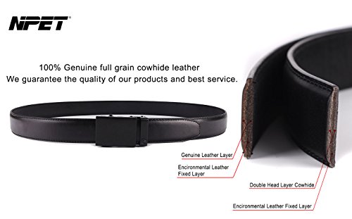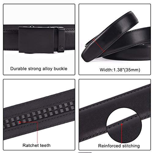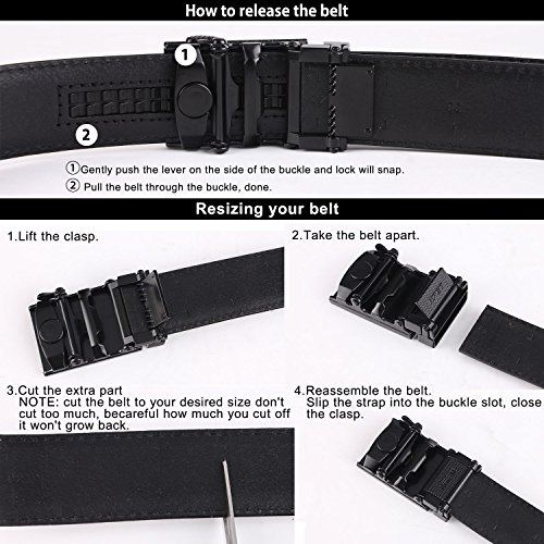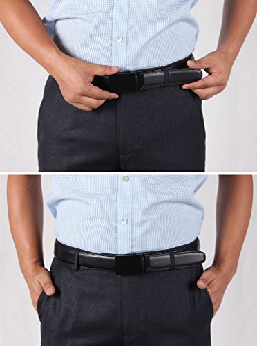 TOP QUALITY - 100% Genuine full grain cowhide leather, highest quality craftsmanship, made of a genuine and durable leather composition with double edge stitching. auto lock buckle (sliding buckle), no needless holes to crack or wear out.