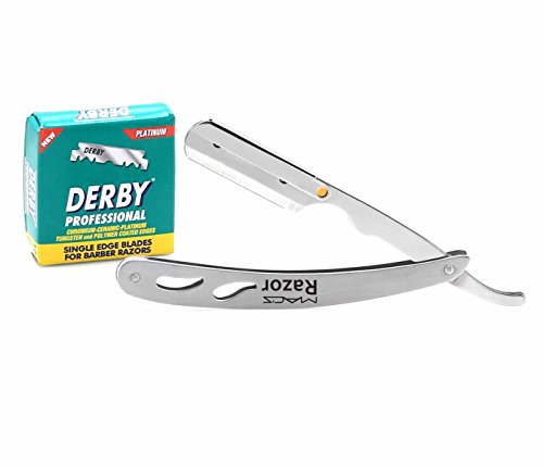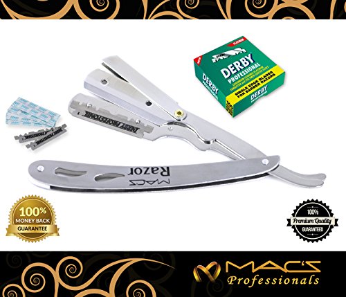 Macs Professional Stainless Steel Barber Straight Edge Razor with Hi-Chromium Derby 100 Count Blades Made of Stainless Steel Easy To Replace-053B1