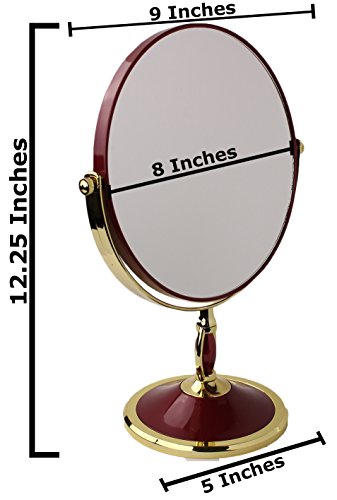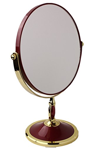 Double-Sided 8" Round Tabletop Vanity Makeup Mirror in 4 Colors by bogo Brands (Red)