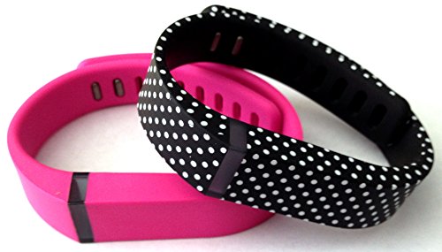 LARGE 1 PINK 1 BLACK WITH WHITE DOTS SPOTS BAND FOR FITBIT FLEX ONLY WITH CLASPS REPLACEMENT /NO TRACKER/
