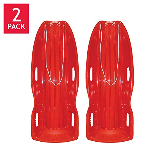 Studio : Airhead Publisher : Airhead Product Description Airhead's 2 rider toboggan is a quick and lightweight sled. Molded runners help keep this sled on track when heading down hills. Grab a friend and enjoy the ride, with 4 cut out handles for grip on each sled. The high impact plastic construction won't crack in cold temperatures, and the bright red color makes this sled stand out on crowded hills. A pull-rope is included on each sled for convenience. 0