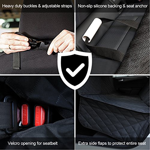 WHY DO YOU NEED A DOG SEAT COVER FOR YOUR CAR? We love to take our pets to go out for trips as they are our most loyal friends. No matter dogs or cats, it's inevitable to have their hair, dirt or scratch on your leather car seat. So you should have a back car seat cover for the safety of both your car and your pets. WHY CHOOSE UPSIMPLES DOG CAR SEAT COVER? Protect Your Car from Being Torn Pets' Pee Dirt Upsimples?standard sized dog car seat cover, which is 58'×54' plus two side flaps, is helpful for protecting your car seat from your pet's pee hair fur scratch dirt. The pet seat cover is made with oxford cloth and added a PVC coating to make sure a waterproof seat cover. The seat cover can effectively help to keep back car seat free of dirt such as pet's hair dust. Pet's hair doesn't stick to it so it's easy to clean with just a damp cloth. Protect Your Pet from Slip Meanwhile Enjoy Every Trip Our dog seat cover is very soft for pets to enjoy a more comfortable trip. The anti-slip backing help to keep the cover stay in place, thus making a safer trip for dogs. It can also be used as a dog car hammock to prevent dogs from jumping to the front seat. Universal Fitting Versatile size of 54?x 58 inches perfectly fit for the backseats of standard Cars, Trucks SUVs. Package includes: 1 x Car Seat Cover 1 x Pet Safety Belt 0 |