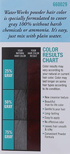 Water works black 20 .21 ounce water works black 20 .21 ounce - water works powder hair color is specially formulated to cover gray 100% without harsh chemicals or ammonia. It's easy, just mix with plain water.