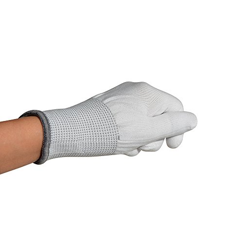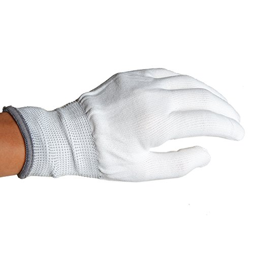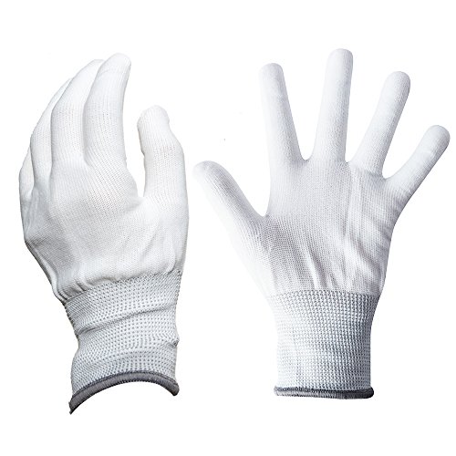 Ehdis Nylon White Working Gloves Stretchy Full Finger Labor Gloves Anti Static Non-slip Gloves for Washing, Car Cleaning, Household Cleaning Keeper - 1 Pair