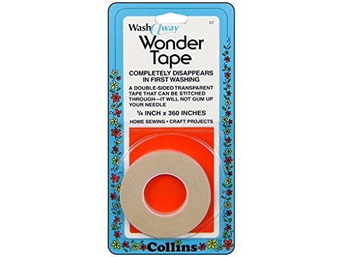- Collins Wash-Away Wonder Tape 1/4"x10yd- This is a double sided transparent tape that can be stitched through and will not gum up your needle