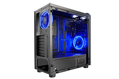 Our X-MirageDx line of cases combines form, function, and style into one package. With a look for both personal and professional use, it boasts a number of subtle features. The most notable being two full size tempered glass windows on either side for easy viewing of your system innards. Show off your internals in style with a smoky tint from all angles. The power supply is also hidden behind a metal black cover so unsightly cables can be hidden away from prying eyes. The front panel is a simple but stylish solid look with a drop-down bay for DVD drives that might not fit the color scheme. The top panel houses one USB3.0, two USB2.0, and HD Audio ports along with a cool white LED that turns on when your system does. There is plenty of room for extra cooling, from standard fans (two 120mm 32 LED fans with dual colored rings are included) to a front-mounted 240mm water cooling option. Comes in five different colors: blue, green, red, pink, and white.Feature