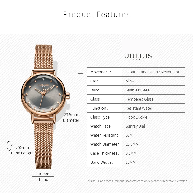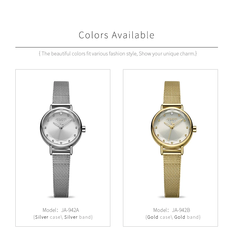상품 내용 새로운 도착 여성 싼 창조적 인 시계 손 시계 드레스 간단한 금속 장미 디자인 석영 시계 도매 드롭 선박 JA-942 브랜드: 줄리어스 모델: JA-942 설명: 다이아몬드 절단 유리, 불규칙한 모양, 영감 당신이 깜짝. 메쉬 스틸 스트랩, 쉬운 디자인 스타일 매력적인 팔찌. -4 색 와서, 선택. -우리는 원래 일본 미요 타 2035 운동, 내구성. 주요 특징: -반짝 빛나게 디자인 스타일 설계 한국에서 만든. -Japanede 원래 미요 타 2035 운동 석영기술 물 저항하는 3 ATM -12 개월 국제 보증 사양 (대략적인) -케이스 직경: 2.35 센치메터 (0.93 인치) 약. -케이스 두께: 1.0 센치메터 (0.39 인치) 약. 밴드 폭: 8.5 센치메터 (0.33 인치) 약. 밴드 길이: 20.0 센치메터 (7.9 인치) 약. 밴드 재질: 메쉬 스틸 -밴드djustable: 예 ![]() ![]() 새로운 도착 여성 싼 창조적 인 시계 손 시계 드레스 간단한 금속 장미 디자인 석영 시계 도매 드롭 선박 JA-942 브랜드: 줄리어스 모델: JA-942 설명: 다이아몬드 절단 유리, 불규칙한 모양, 영감 당신이 깜짝. 메쉬 스틸 스트랩, 쉬운 디자인 스타일 매력적인 팔찌. -4 색 와서, 선택. -우리는 원래 일본 미요 타 2035 운동, 내구성. 주요 특징: -반짝 빛나게 디자인 스타일 설계 한국에서 만든. -Japanede 원래 미요 타 2035 운동 석영기술 물 저항하는 3 ATM -12 개월 국제 보증 사양 (대략적인) -케이스 직경: 2.35 센치메터 (0.93 인치) 약. -케이스 두께: 1.0 센치메터 (0.39 인치) 약. 밴드 폭: 8.5 센치메터 (0.33 인치) 약. 밴드 길이: 20.0 센치메터 (7.9 인치) 약. 밴드 재질: 메쉬 스틸 -밴드djustable: 예 ![]() ![]() ![]() ![]() ![]() ![]() ![]() ![]() 포장 상세