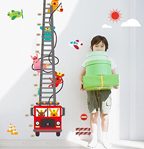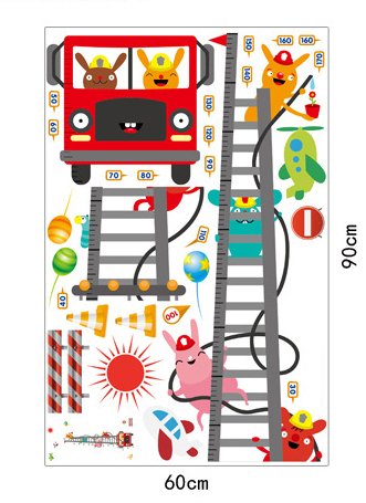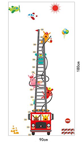 ufengke® Cartoon Fire Truck Fireman Height Chart Decals, Children's Room Nursery Removable Wall Stickers Murals