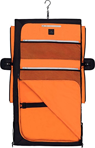 -. Feature : Interior features hanger clamp, two foam bolster compression straps to minimize wrinkles, a zippered mesh tie pocket and a large zippered mesh storage pocket / Exterior features two front zippered pockets ideal for storing accessories. Rear pocket converts to a sleeve for sliding over the handle system of wheeled lage / Removable, adjustable padded shoulder strap / 3.17 pounds, 1008 cubic inches / 21 x 12 x 4 / Pockets: 3 interior zip, 3 exterior