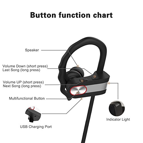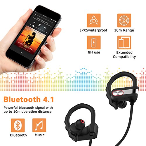 IPX5 Wasserdicht: Bluetooth Kopfhorer-Chip mit interner Nano-Beschichtung und wasserabweisendem Gehause fur einen doppelten Schutz gegen Wasser und Schweiss. So konnen Sie das Headset beim Sport im Regen nutzen und es wird auch bei heftigem Schwitzen zuverlassig Musik wiedergeben und fur Telefonate verwendbar sein.