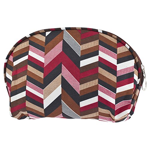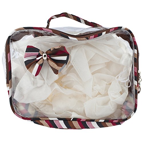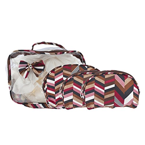 Lux Accessories Multicolor Red Zig Zag Print Bow clear Cosmetic Bag Set 4PC