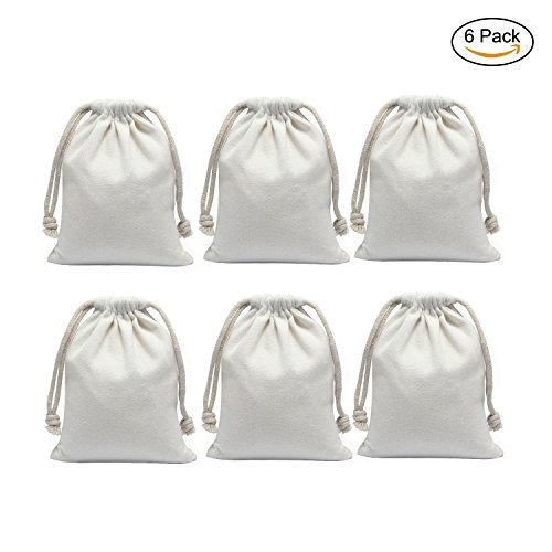 6 PACK Cotton Muslin Bags Small Canvas Drawstring Bag for Multipurpose Storage - FUNLAVIE