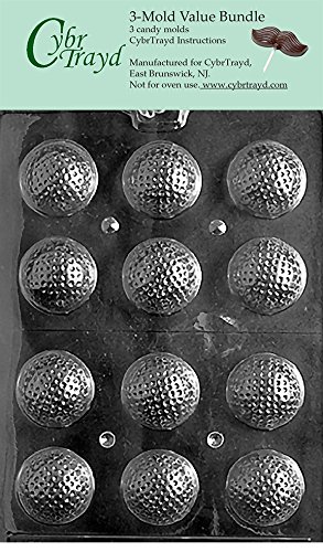 CybrTrayd S051-3BUNDLE Golf Balls 3D Chocolate Candy Mold with Exclusive Copyrighted Chocolate Molding Instructions
