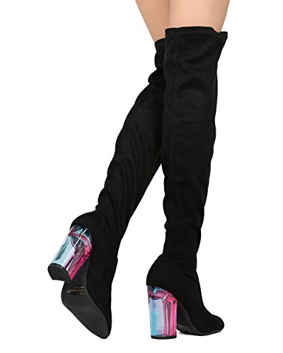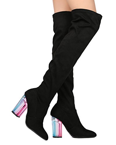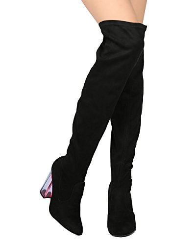 Studio : Qupid Publisher : Qupid Binding : Apparel Product Description These fabulous boots are made with a faux suede upper, pointy toe and stitch accent. Also made with a single sole, contrasting colored block heel, over the knee high rise and easy to pull on design. 0