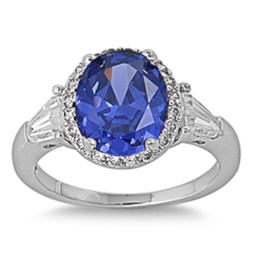 -. Title : Oval Design Simulated Tanzanite & Clear Cz .925 Sterling Silver Ring Sizes 4-11