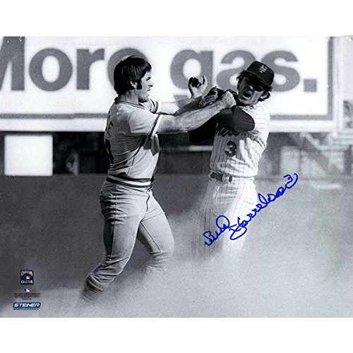 Bud Harrelson Autographed Black and White Fighting With Pete Rose 8 Inches By 10 Inches Photo